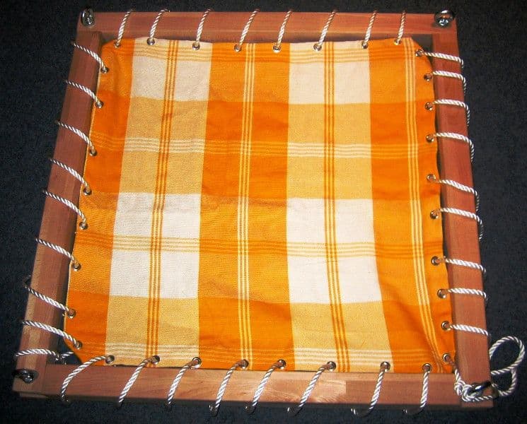 Tighten the cloth with the rope in the frame.